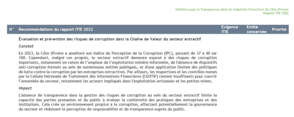 Capture d’écran/Rapport ITIE 2022 risques de corruption dans les titres miniers