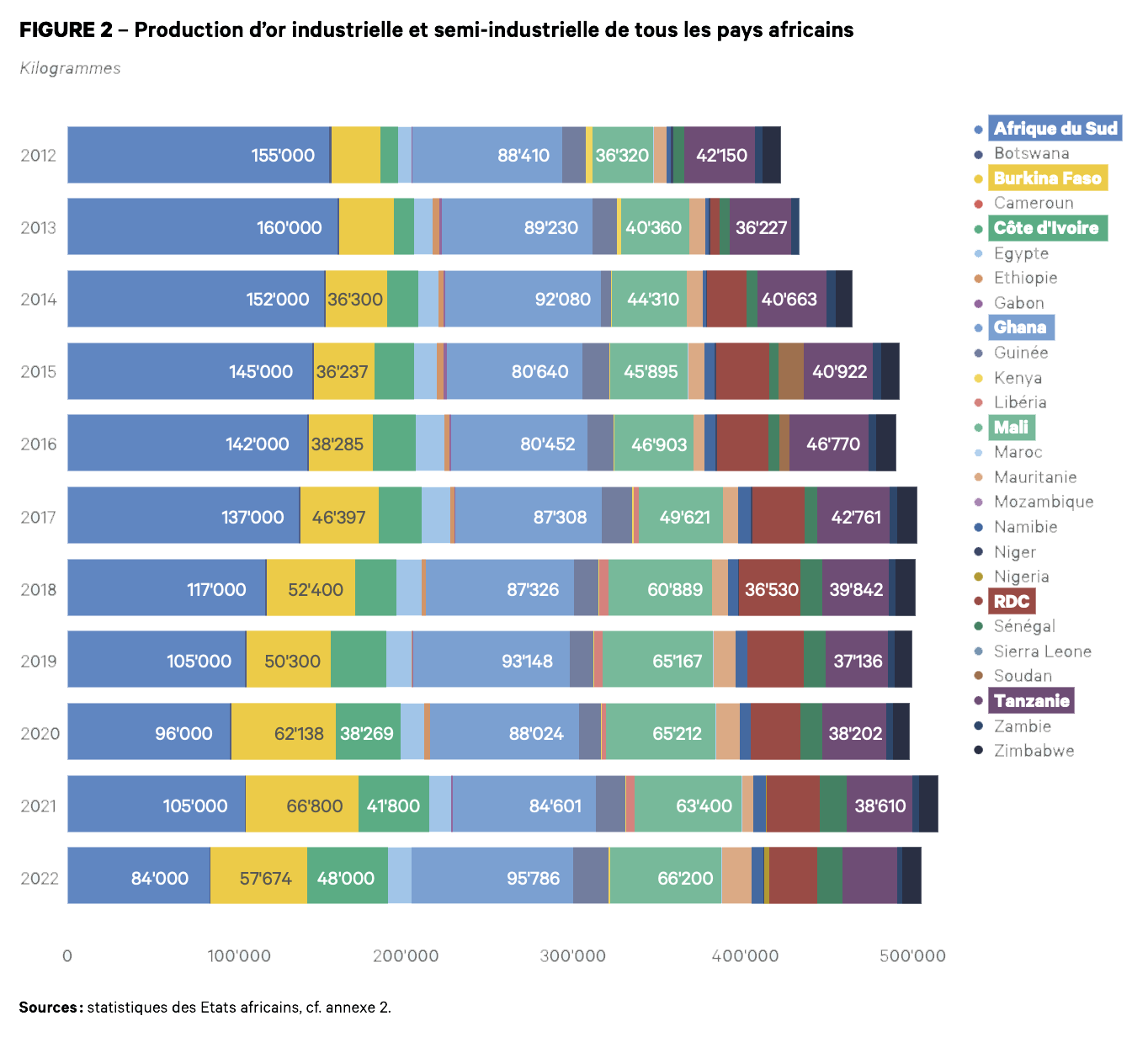 Graphique issu du rapport "Sur la piste de l'or africain" publié par SWISSAID en 2024