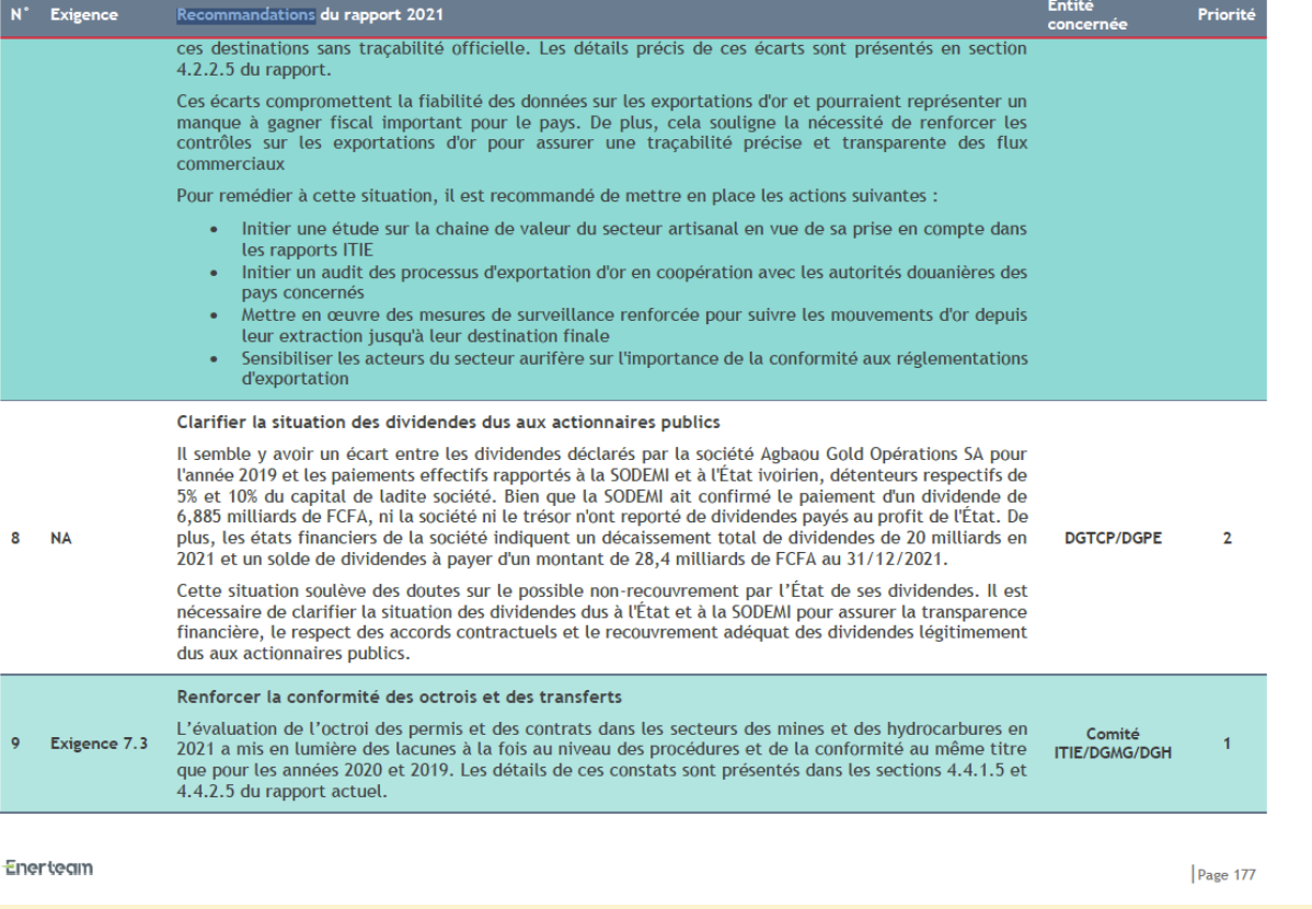 Sur la question, nous avons contacté la société Agbaou Gold et les responsables de la SODEMI par courrier et courriel. À l’heure de publication de notre enquête, aucun n’a répondu à nos sollicitations. Par échanges téléphoniques, le Secrétaire Exécutif de l’ITIE, Tingain Julien, confirme un possible recouvrement mais, sous réserve de preuves que le Trésor ivoirien compte lui fournir dans les jours à venir.